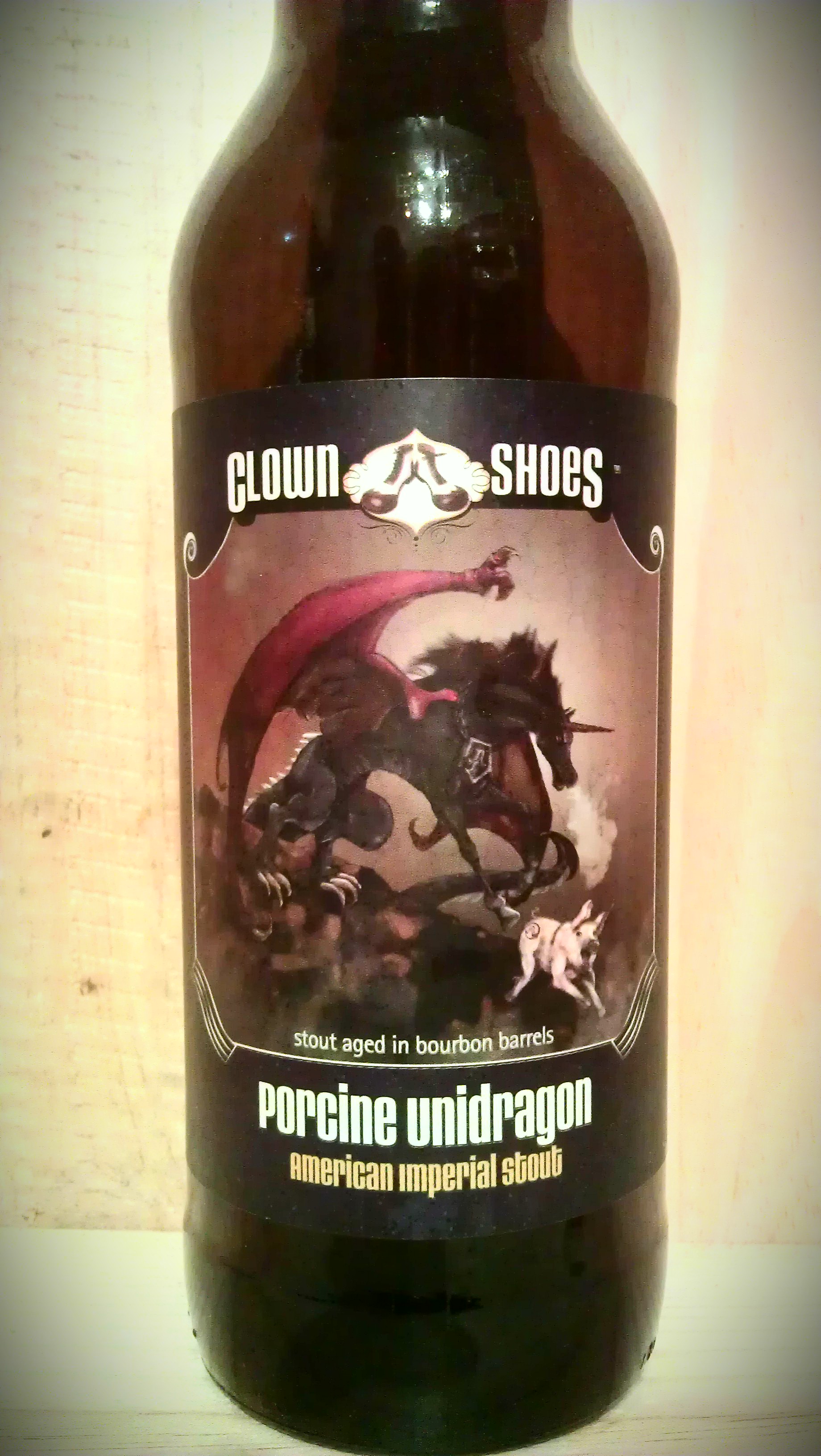 Clown Shoes Porcine Unidragon Published July 5, 2013 at 1840 × 3264 in Clown Shoes Porcine Unidragon Clown Shoes Porcine Unidragon “American Imperial Stout” – I guess it’s American cause it is aged in whiskey barrels? I dunno but it was an oaky beast. Clown Shoes Porcine Unidragon Comments comments